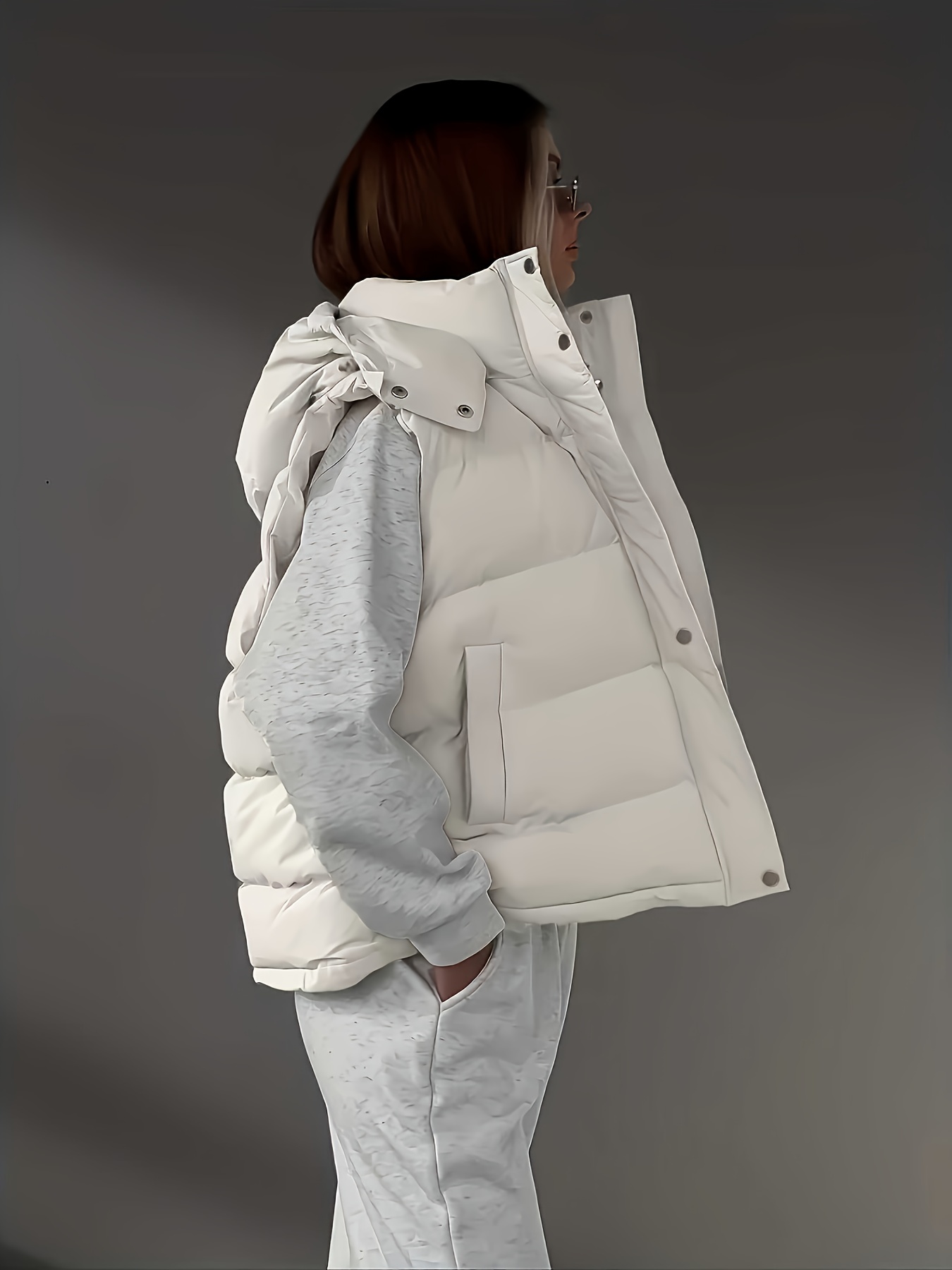 This holiday-inspired look blends comfy textures with a playful Christmas graphic for the perfect seasonal vibe. The ribbed leggings and puffer vest add warmth while keeping the outfit stylish and practical. Finished with plush slippers and soft neutral accessories, it’s the ultimate cozy winter ensemble.